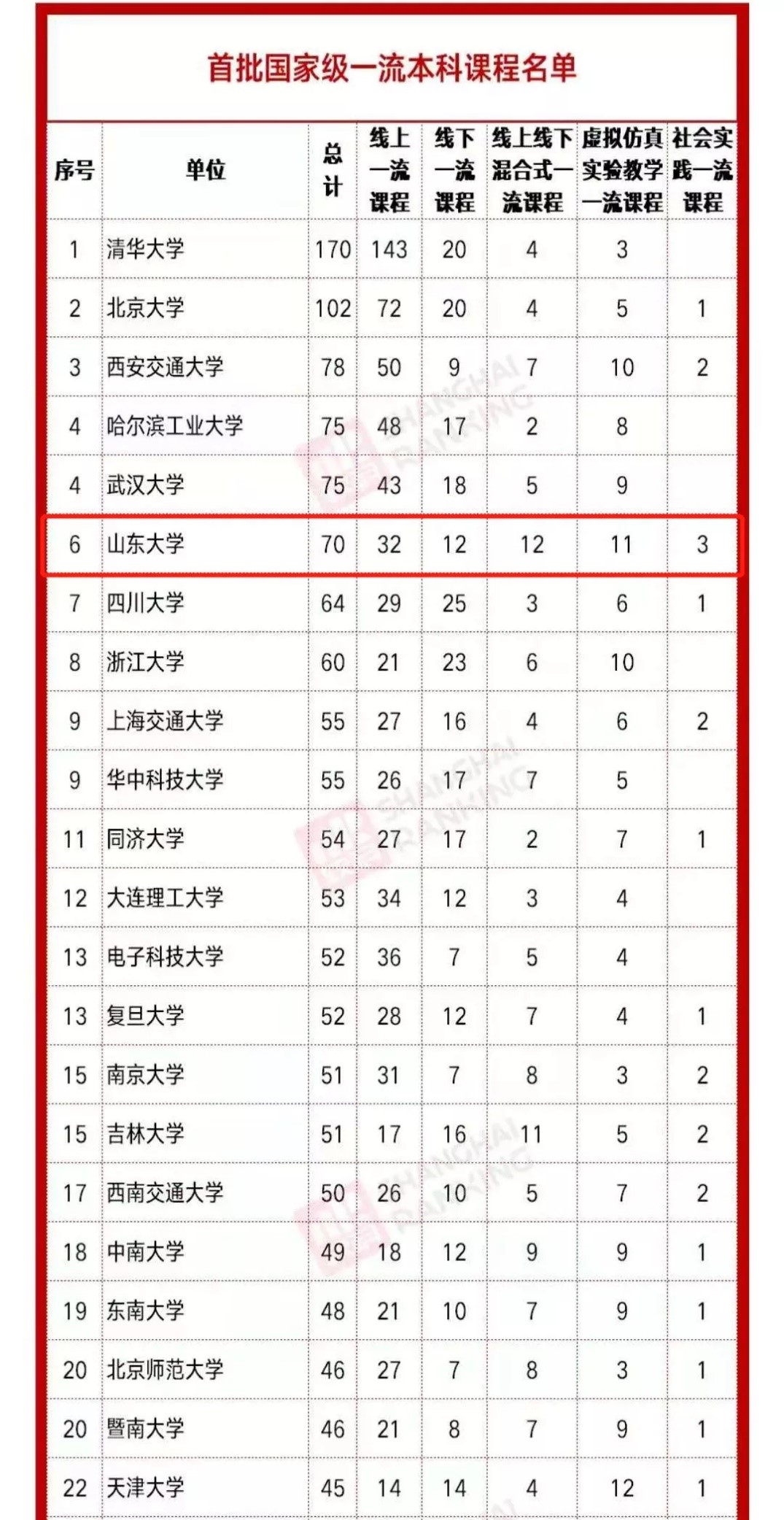 山东大学全国第六!教育部公布首批国家级一流本科课程
