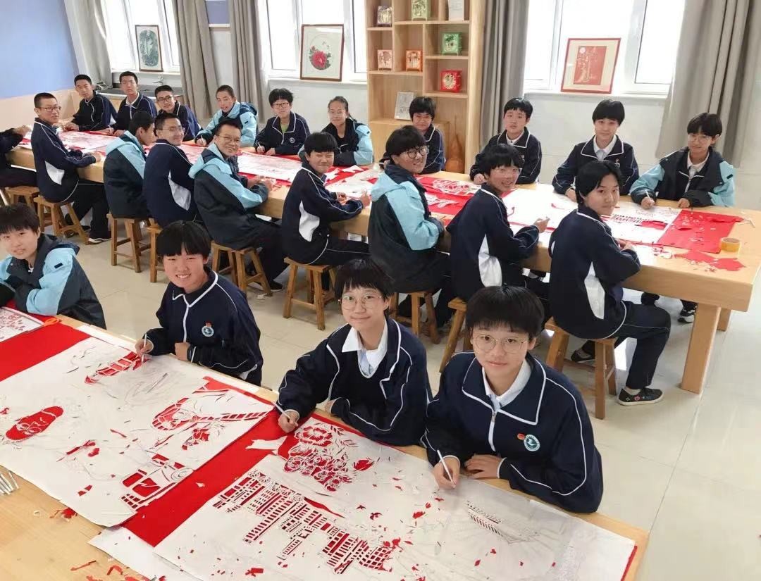 作品《中国力量》由李娜老师主导,美术组其他老师协助,学生分成多个小组,采用剪、刻结合的方式合作完成。