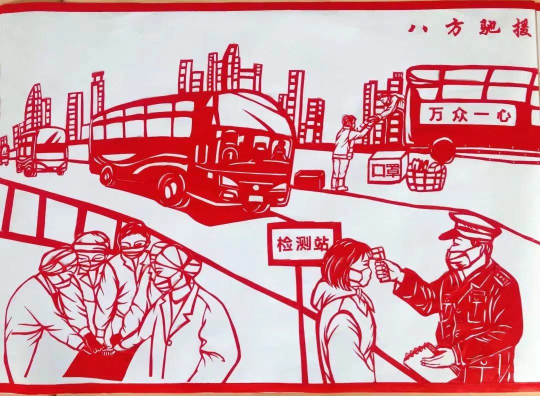 近日,为传承民族优秀传统文化,弘扬抗疫精神,历城二中美术组教师带领同学们完成了剪纸作品《中国力量》,讴歌医护人员心怀大爱、直面危险的大无畏精神,展现抗击疫情的感人事迹。