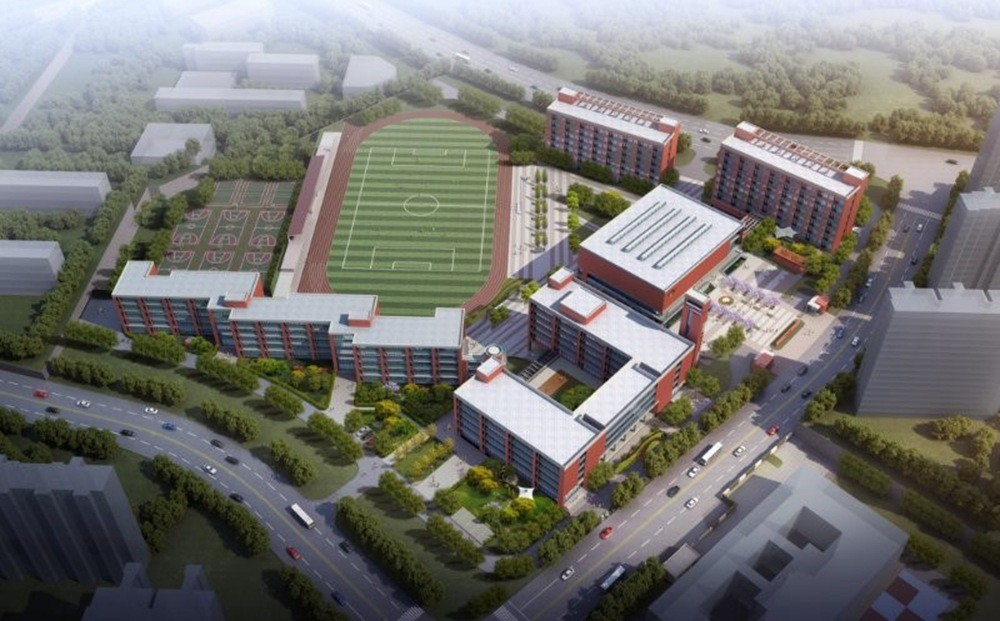 学校位于济南市二环南路以南,东邻山东大学兴隆校区,兴仲路与规划市政道路交汇处,教育资源密集,学术氛围浓厚,依山傍水,环境优雅。规划总用地面积65558平方米,总建筑面积60272.7平方米,设计有教学楼、实验综合楼、学生食堂及体育馆综合楼、男女生各7层宿舍楼,以及400米跑道标准运动场、篮球场、乒乓球场。班级数共36个,班额50人,1800名学生。