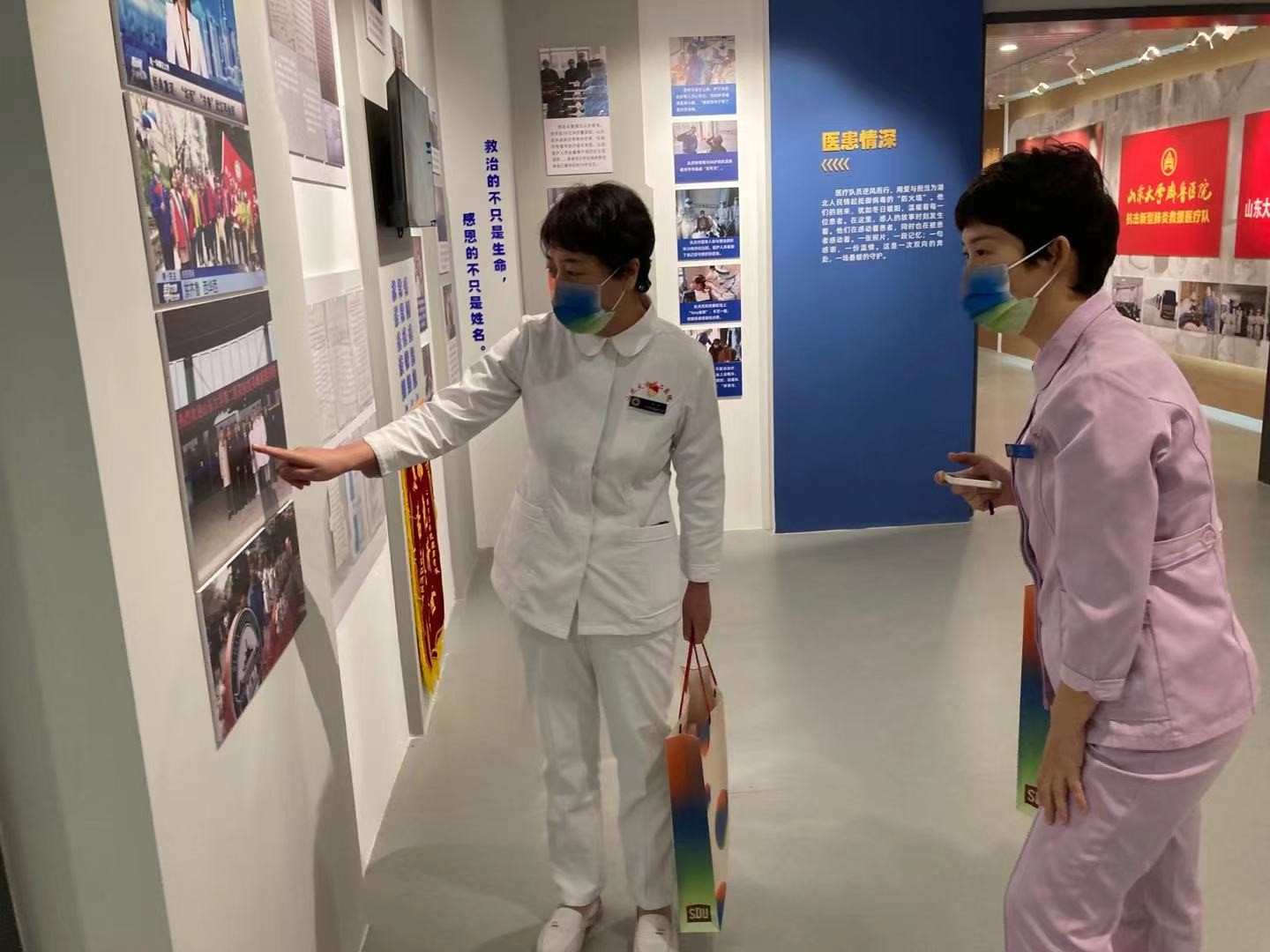 山东大学人文社科展位于文史楼南楼二层,集中展现了山东大学120年来在人文社会科学领域取得的重要成就。整个展览重点展示了山东大学在不同历史阶段为国家人文社科发展做出的积极贡献,展现了山东大学深厚的人文底蕴和悠久的学术传统。“弘扬伟大抗疫精神 激发奋进前行力量——山东大学抗击新冠肺炎疫情主题展览”位于文史楼南楼二层。展览通过500多张图片、近100件实物和几十个视频,分七个部分28个单元,回顾了山东大学医疗队员白衣为甲、逆行而上、与病魔较量、与病毒斗争的感人故事,重温全体山大人众志成城、同舟共济、坚守岗位、群防群控的先进事迹。