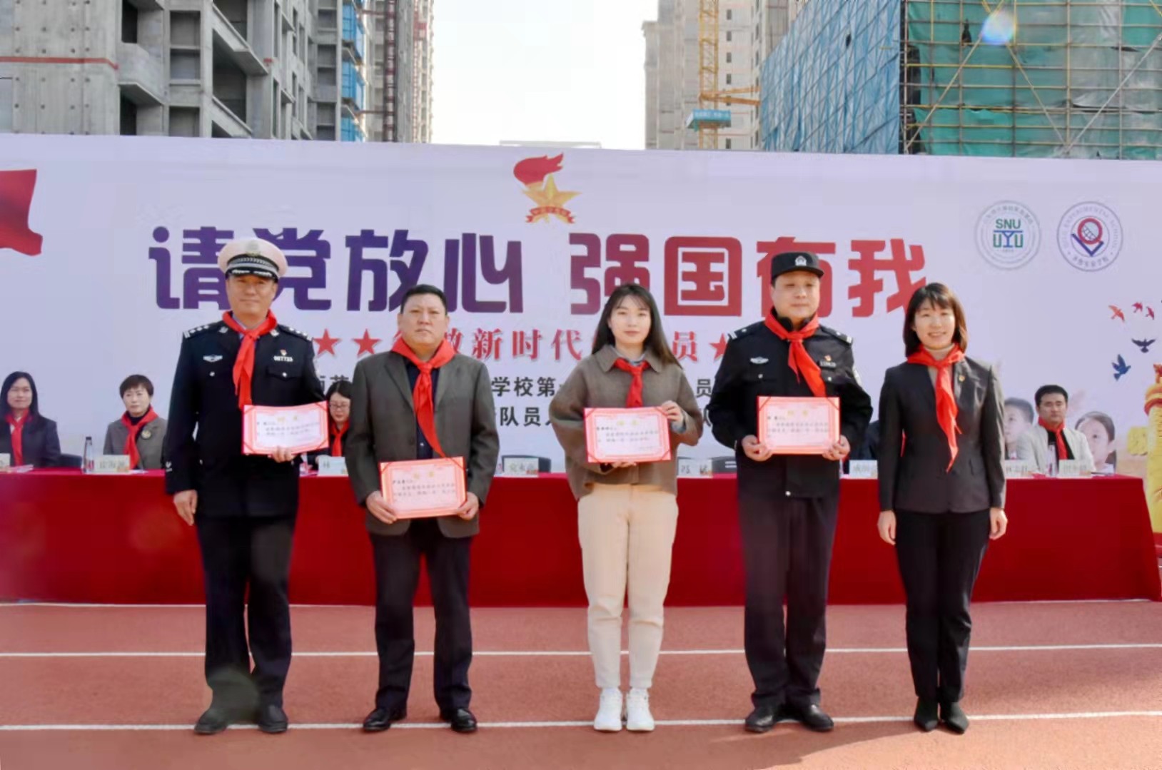 新学年各中队辅导员上台,接受聘任。