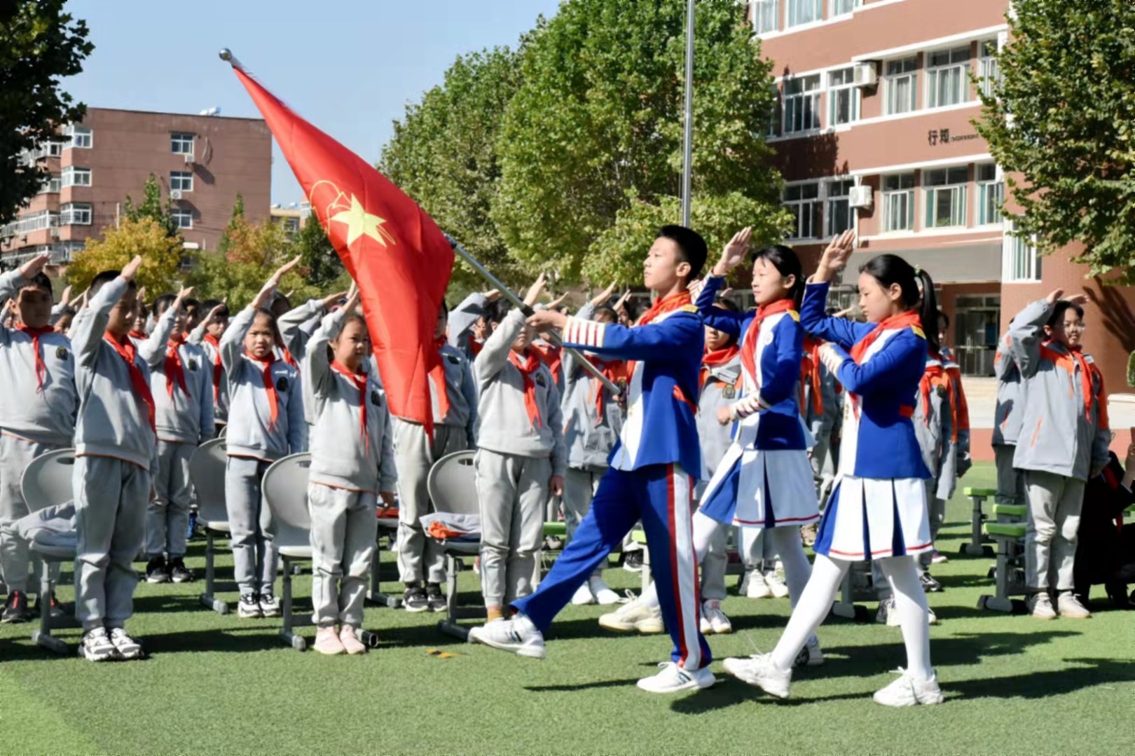 队旗飘扬,队歌嘹亮,我们在党的关怀里奋进!