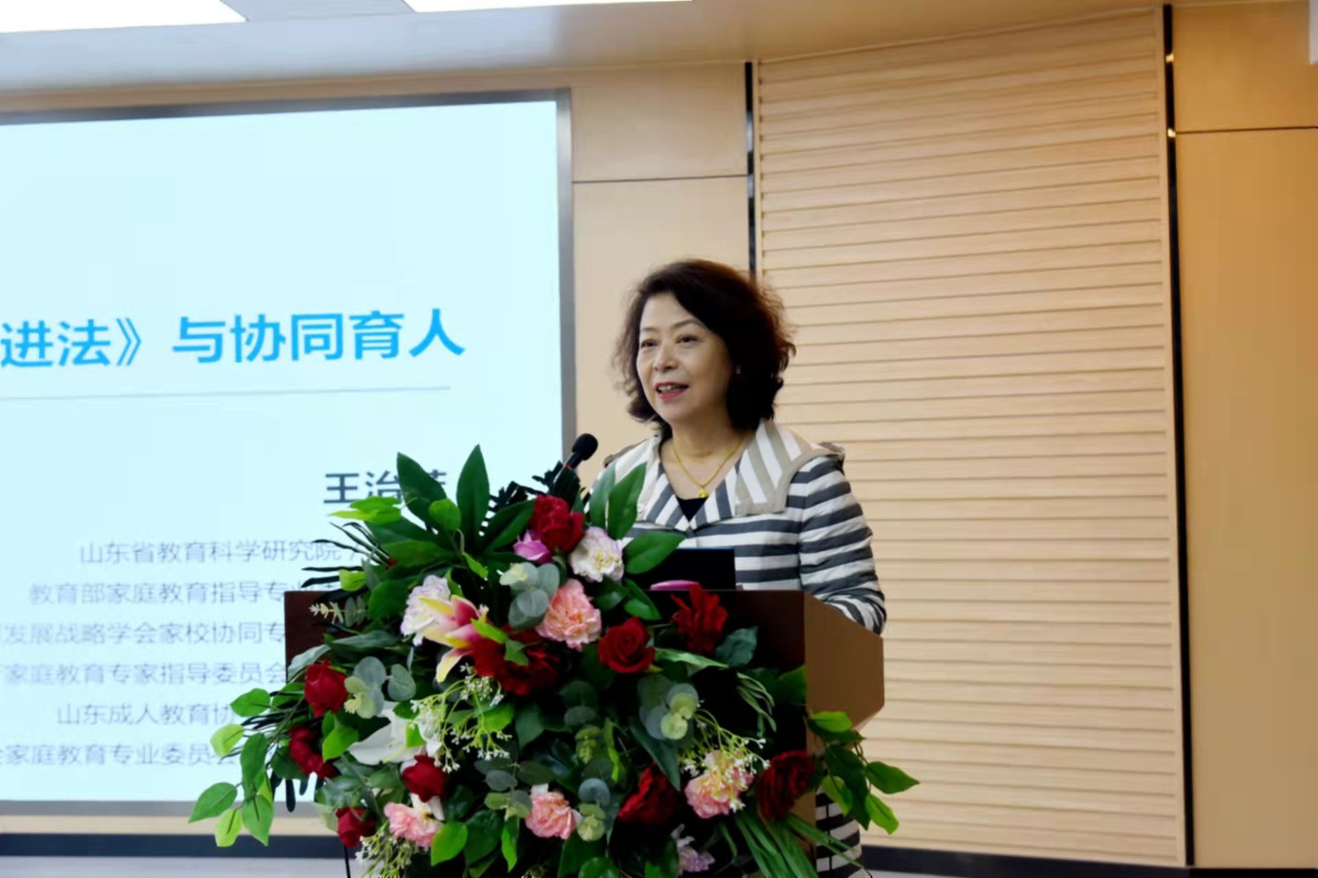 寻梦的路上需要专家的指点和引领,教育部家庭教育指导专业委员会委员、中国教育发展战略学会家校协同专委会副理事长、山东省教育厅家庭教育专家指导委员会专家兼秘书长、山东省教育学会家庭教育专业委员会副理事长兼秘书长王治芳作了题为《家庭教育促进法与协同育人》的报告。王治芳通过一个个鲜活的案例说明家庭教育的重要性,通过深入浅出的讲述,让与会人员了解了《家庭教育促进法》相关的条例,学习了和谐家庭关系建立及维系的基本技巧,认识到协同育人的重要作用。