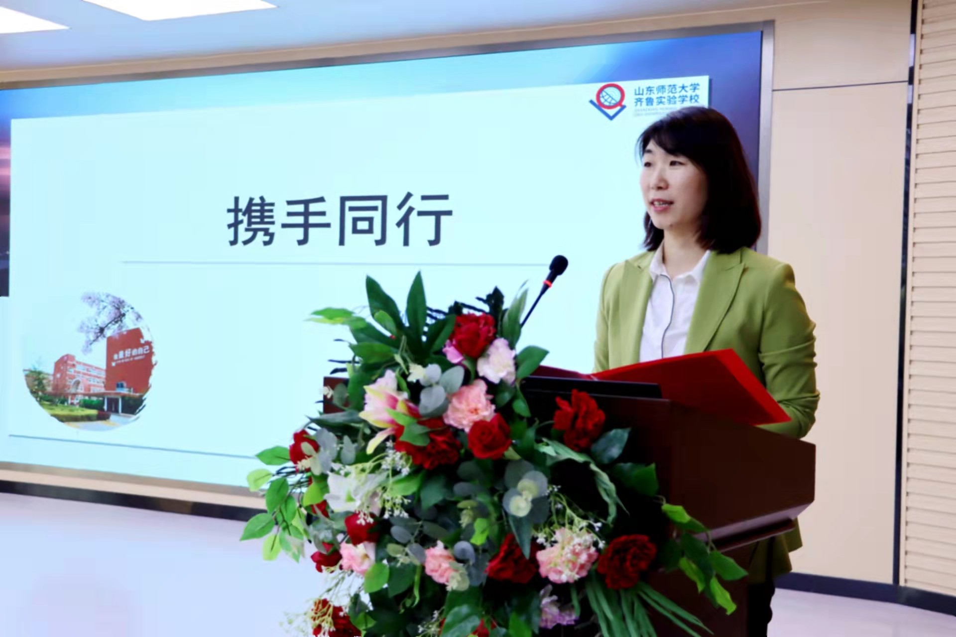 齐鲁实验学校党支部书记、校长孙艳梅从问卷调查、了解需求,构建课程、共享智慧,完善构建、深度融合,学分推动、有效落实四个方面向与会来宾介绍了学校家校工作。“学校始终站在孩子成长角度办教育,把每个孩子的成长放在首要位置,尊重、重视每个家长在孩子成长中的重要作用。”孙艳梅倡议家校共育齐鲁少年,让每一个孩子成为齐鲁最闪亮的名片。