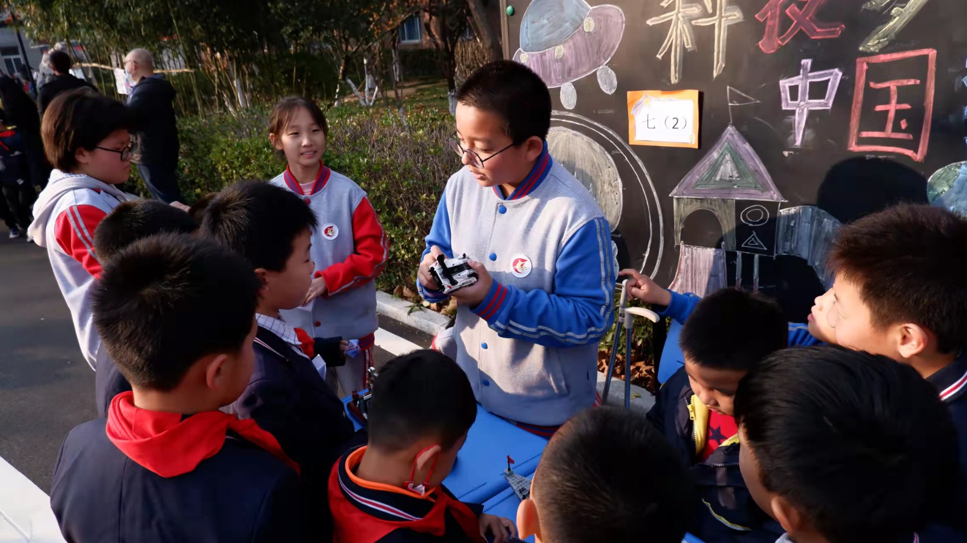 山东商报·速豹新闻网记者在活动现场看到,科技嘉年华区域不仅展出了同学们的科技小制作、科技小发明、科学小实验等作品,在科技游园时间,更有红领巾科技讲解员用通俗易懂的语言为参观的学生讲解科学知识、演示科技作品。围观的同学连连称奇,直呼也想亲自探寻其中的奥秘。科技挑战赛环节为学生提供了亲身体验的机会,在纸飞机掷远比赛、纸船承重、小车快跑、三阶魔方速拧等比赛中,同学们有的制作纸飞机、有的制作纸船,还有的用矿泉水塑料瓶做车身、瓶盖做车轮、气球做动力,制作出反冲力小车……
