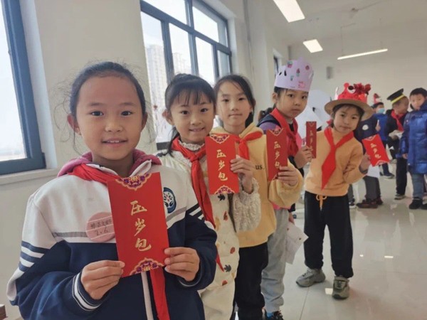 济南市天桥区可悦小学二年级学生的期末“大考”则有浓浓的年味,发红包、转转盘、猜灯谜,学校结合小小演说家、小小朗读者、计算小标兵等特色课程活动,培养学生的综合素养。