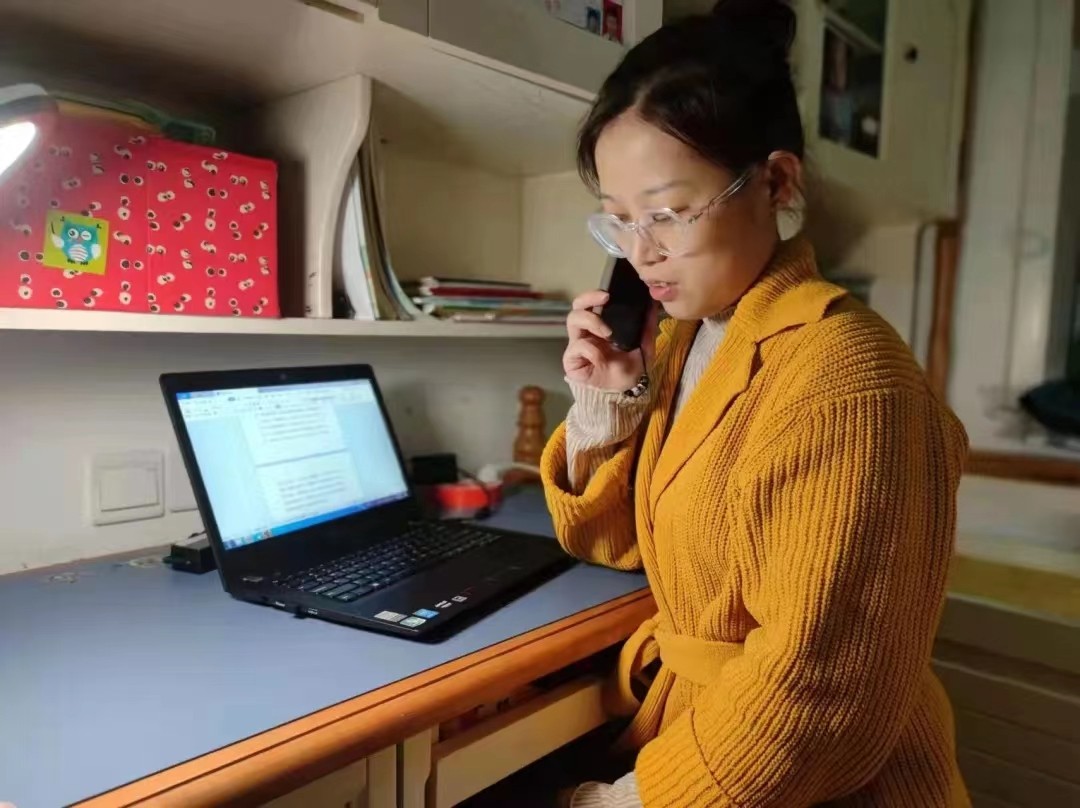 山东省实验中学心理老师齐芬和丈夫张玉林都是省实验中学的老师,但平时两人在不同的校区工作。线上教学后,齐芬跟丈夫商量,接听热线需要一定的流程,很多相关资料、档案都在办公电脑上,在办公室里工作更加便利,给家长和学生提供的咨询也会更专业。“不如,你也来我办公室上网课,咱俩背对背办公吧?”听到妻子的提议,张玉林立马答应了下来。
