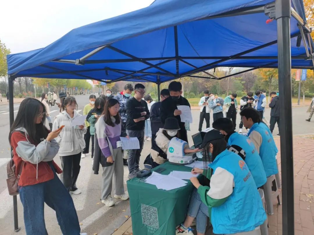11月8日上午11时,山东省血液中心的爱心献血车缓缓驶入,提前等在采血点的志愿者们整装待发,协调分工,做好各项准备工作,向医护人员确认各项注意事项。志愿者们严格按照疫情防控要求,在对应的岗位上协助工作人员引导山财学子有序地完成献血流程。
