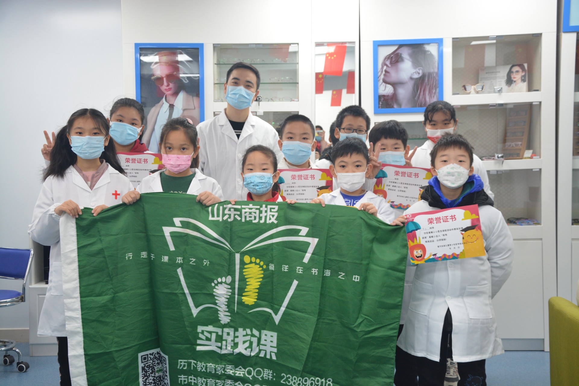 与此同时,山东商报·速豹新闻网在爱可优视医学视光中心挂牌设立了“小记者研学实践基地”,欢迎小记者们在预约后免费检测视力,体验当眼科“小医生”。