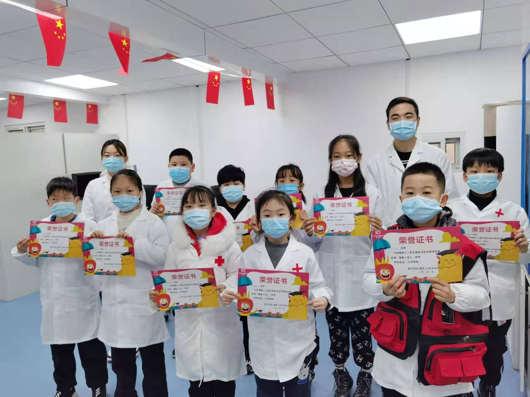 调查报告讲座之后,到了小记者们最为期待的环节:“眼科小医生”职业体验。小记者们纷纷换上白大褂,在医生的指导下,相互轮流检查。本次视力检查的项目包括查裸眼视力、验光、测眼轴三项,爱可优视医学视光中心还为每位小记者建立了视力健康档案,方便后期检测数据的跟踪对比。