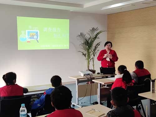 针对在校已经完成模拟新闻发布会学习的解二小的小记者们,杨芳还鼓励他们以自己所在班级为范围,自主开展青少年视力健康情况实地调查,将自己的所见所闻进行总结,撰写成调查报告。为此,我们还为济南市解放路第二小学的小记者们讲解了调查报告写作相关知识,以完整的《小学生零花钱的调查报告》为例,围绕调查报告是什么、调查报告的特点、调查报告的构成与调查报告的写作要求等几方面,为小记者自主进行青少年视力相关调查研究奠定理论基础。
