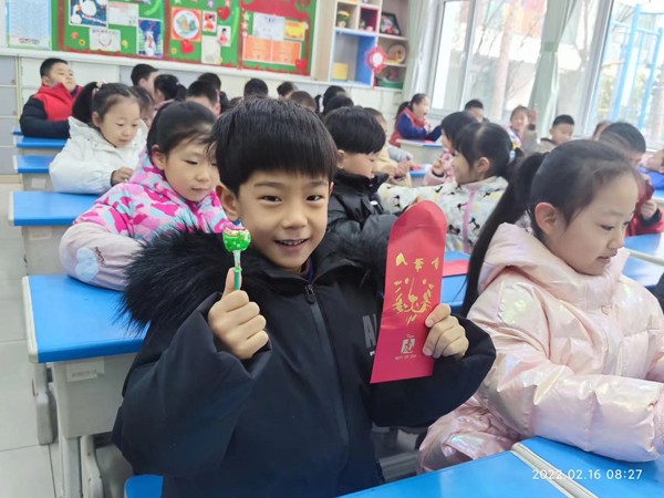济南市行知小学一年级四班的学生收到了棒棒糖和“虎头红包”,班主任王靓表示:“为孩子们准备的这些礼物都是有寓意的,棒棒糖是希望孩子们学习棒、身体棒,在班里学习都能感觉到甜蜜温馨。‘虎头红包’是希望孩子们在新学期虎虎生威勇敢向未来。”王靓表示,新学期,她将继续陪伴孩子们度过小学一年级的生活,继续做他们的朋友、做他们的港湾。