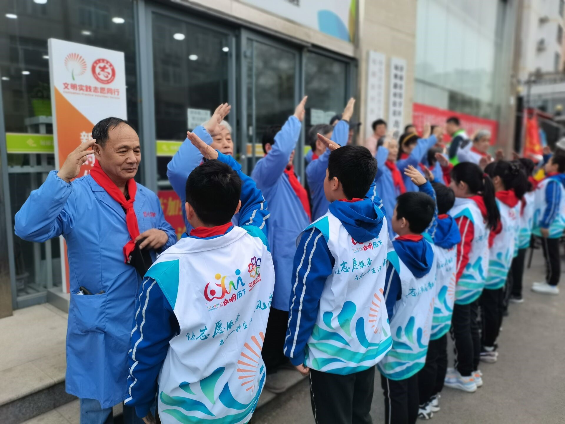 升旗仪式上,学校举行了“学雷锋”志愿服务主题月启动仪式。四(1)中队以“践行志愿服务 做新时代小主人”进行国旗下演讲。随后,各中队播放了介绍雷锋先进事迹的纪录片,并邀请校外辅导员参加主题队会,掀起了志愿服务活动热潮。五(5)中队的队员代表则在辅导员的带领下,一起来到了吉祥苑社区“匠心筑梦志愿服务站”,和工作人员及工匠爷爷们一起完成本次学雷锋志愿服务。在集中清理服务活动中,队员们手拿各种工具,有条不紊地对临街大小街路、背街小巷的垃圾进行收集清理,街路面貌焕然一新。