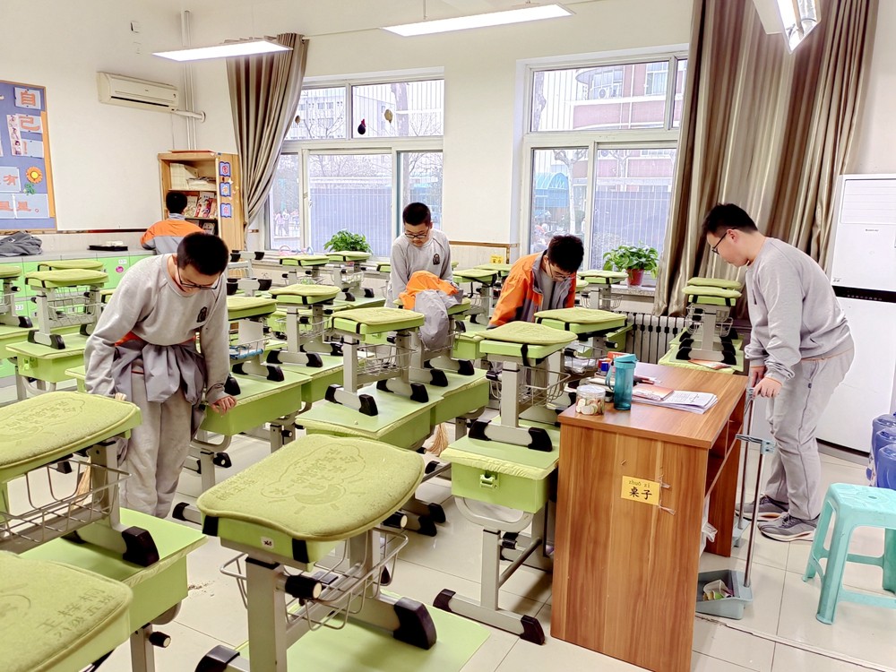 最真实的校园精神是浸润孩子心田后的行动自觉。正如七年级的小伙子出现在一年级教室,自发主动地整理桌椅、拖扫地面,“老师,您歇着,我们来干!”“老师,以后咱班卫生我们包了!”这“天降神兵”温暖了老师,更温暖了即将入队的孩子们。“因为我也曾经是他们。”一位七年级的孩子这样说。当曾经的小小少年在老师、师哥师姐们的关爱下成长,这份根植于心的爱便化作日常的美好行为和常态榜样示范传递给身边更多的人。