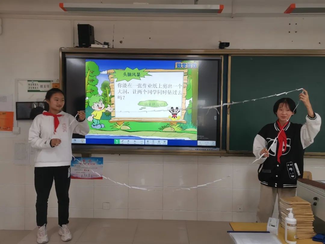 五年级学生以数学游戏为依托举行了“玩转数学”主题活动,六年级学生则用一张作业纸,剪出大洞完成身体的穿越。在学中“玩”,在“玩”中学,“玩”中有法,“玩”中有乐,“玩”中有趣,“玩”中有得。此次活动既弘扬了数学文化,又让学生在紧张激烈的比赛中体验到了数学的魅力。