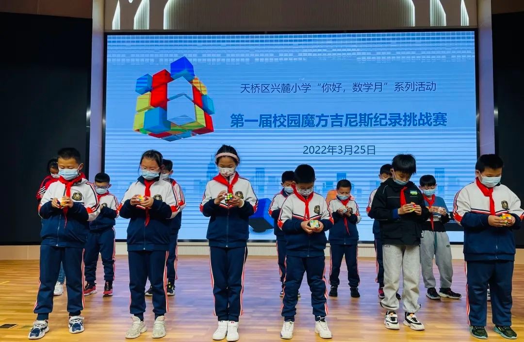 为有力推进“双减”工作落到实处,激发学生的数学学习兴趣,3月,济南市天桥区兴麓小学以“数学π对 数我生威”为主题,启动了首届“你好,数学月”活动。校园魔方吉尼斯挑战赛作为本次数学节的最后一项活动,日前,同学们积极报名,在校园里掀起了一股儿玩魔方、赛魔方的热潮。