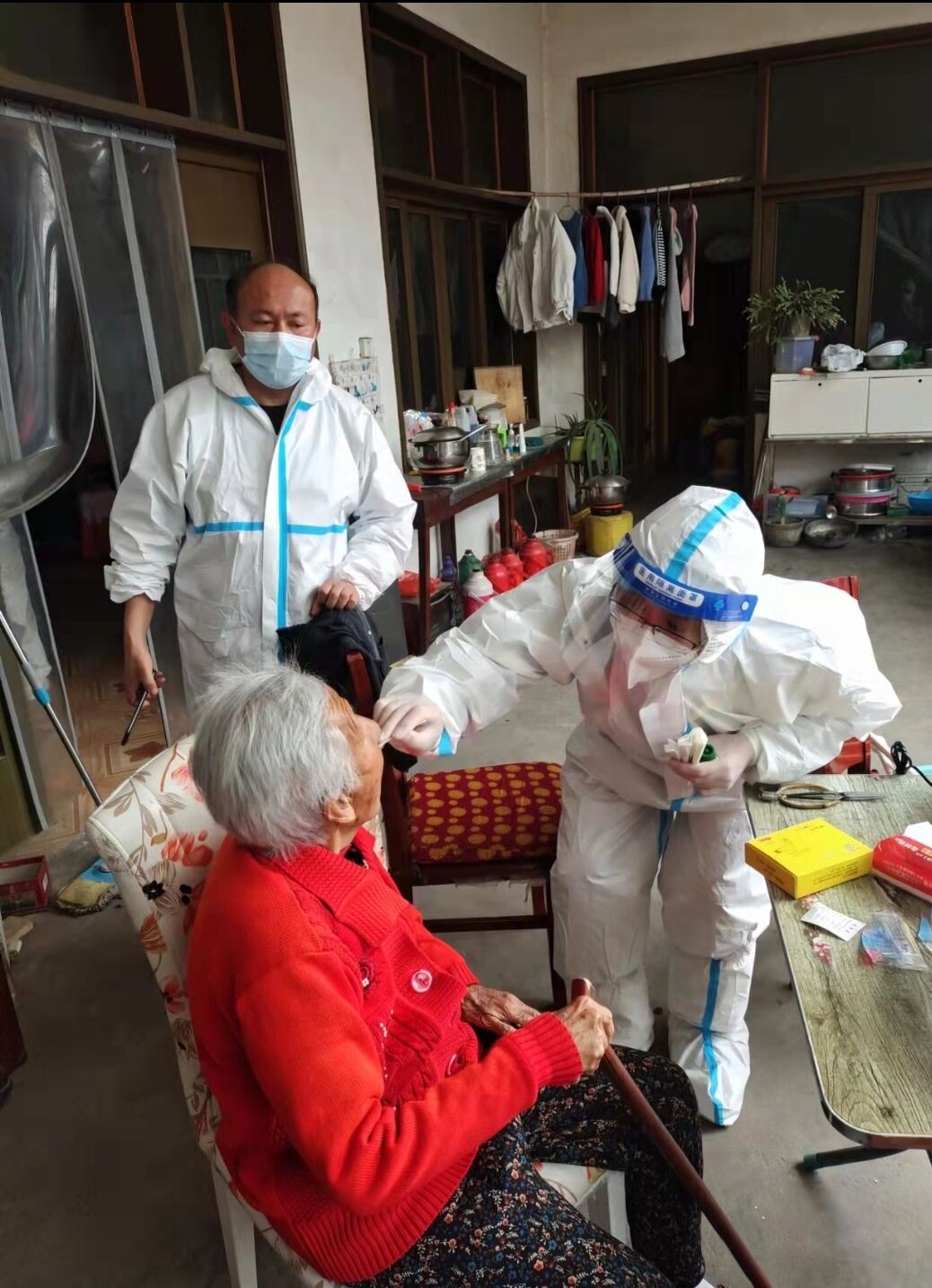 为确保本村人员全部参与,检测不落一人,王义成与检测人员还“主动上门”,为行动不便的老人进行核酸检测。同时对进入本村施工的全部工作人员进行核酸检测,为做到外防输入,确保万无一失。