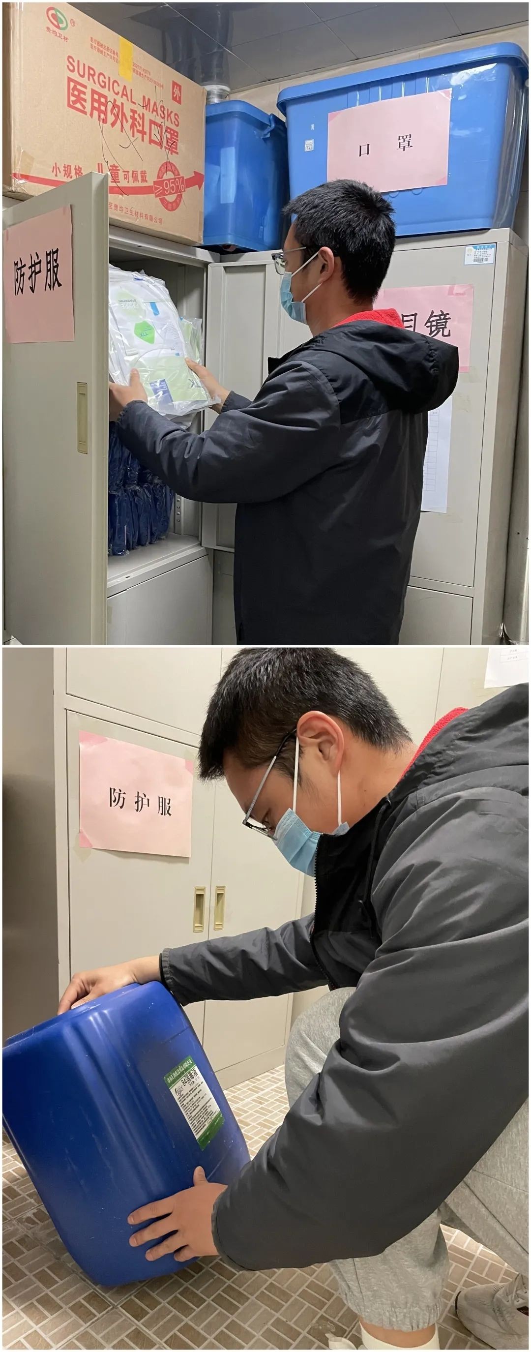 非常时期没有局外人,宋蕾老师的爱人姜文冰,同在济南市趵突泉小学工作,是一名党员,也是一名总务后勤负责人,正在用另一种方式坚守在学校疫情防控第一线。