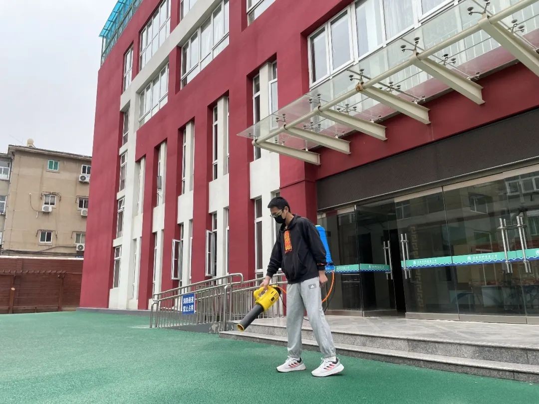 疫情防控期间,校园实行相对封闭管理。向保安人员提出要求,校外人员非必要不入校,严格入校人员测温,两码检查及场所码的扫描;现场监督教职工入校检测,检查保安人员校园巡检记录、值班记录、学校出入登记,测试红外自动测温设备确保设备正常使用;对校舍安全,消防设施、场地设施、教室办公室设备、校园监控、配电室、校园周边环境等进行安全隐患排查,发现隐患及时排除;检查校园清洁及重点部位每日的消毒情况……这是姜老师每天必须完成的工作。师生居家学习期间与后勤人员每周至少进行两次的校园全面消毒,为师生全面复学提供安全保障。