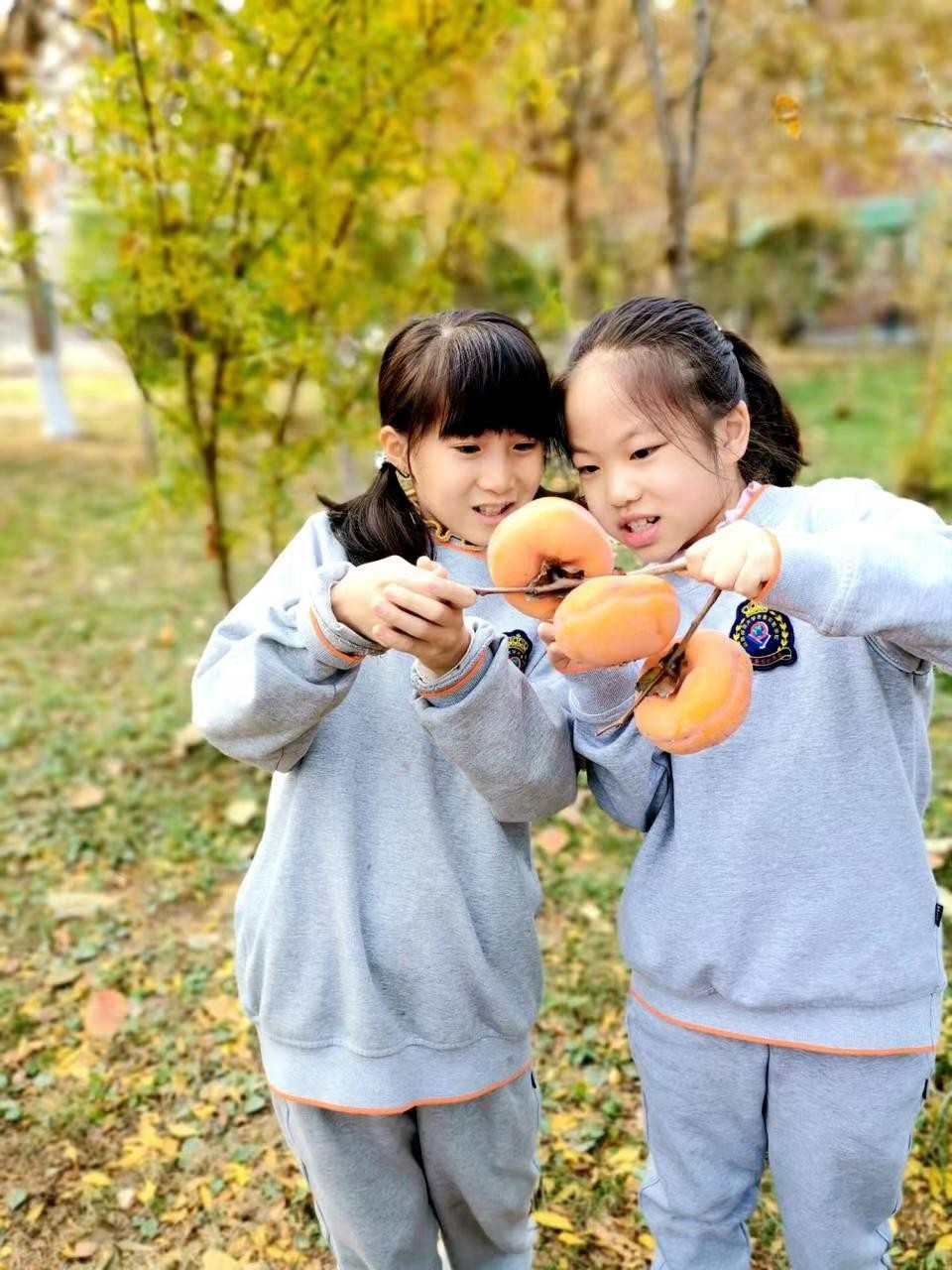 除了常规种植,学校更强调劳动知识的实践探索与观察体验,项目化学习就应运而生。在果园中,孩子通过“柿柿如意”活动,经历了好“柿”发生——柿子知识探秘、心想“柿”成——摘柿子、“柿”情画意——画柿子(记录采摘过程)、“柿柿如意”——做柿饼等一系列活动。学生通过项目调查、观察、实践、记录和总结,促进了同学间的交流与合作,在解决问题、完成项目的过程中,综合能力提升,最大程度地发挥了劳动的育人功能。