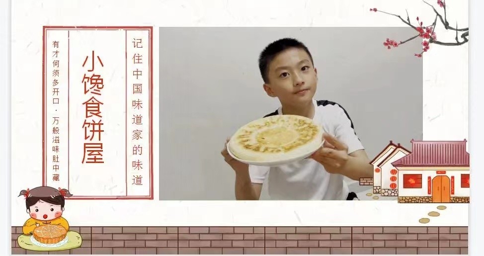 传统美食、拼盘凉菜、面食、糕点、创意饮料……活动中,同学们有的和小伙伴一起进行小组合作,有的和父母一起,寻找美食的历史渊源,准备原材料精心制作,美食颜色讲究搭配,装盘艺术考究用心。“油旋算是济南为数不多的独特小吃,外皮酥脆,内瓤柔嫩,葱香透鼻,因其形似螺旋,表面油润呈金黄色,故名油旋。”“这是一款不用吐骨头的卷排骨,中间是土豆,外面是缠起来的五花肉,酸甜口味,味道特别好。”“茶冻撞奶,像在吃果冻一样滑溜,茶的微涩,牛奶的香甜,比很多甜腻的网红奶茶更好喝。”孩子们还专门录制了小视频,一边介绍、一边展示美食的制作过程。