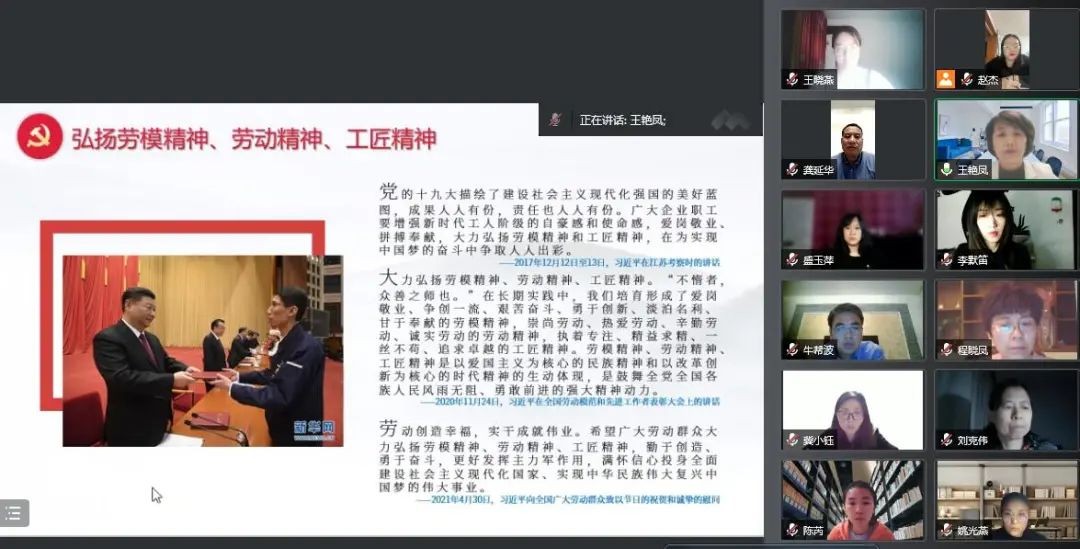 最后,王艳凤鼓励老师们要积极弘扬新时代劳动者的“创新精神”“实干精神”“工匠精神”,“做起而行之的行动者,当攻坚克难的奋斗者”,在教育岗位上展现自己的抱负和激情,脚踏实地、艰苦奋斗。同时,要在学校生活教育的引领下,做好劳动教育,引领学生树立正确的劳动观,努力培养热爱劳动、勤于劳动、善于劳动的高素质劳动者。党员教师纷纷表示,将不断增强使命感和责任感,立足本职,勤于创造、勇于奋斗,在教育岗位上发挥党员先锋作用。