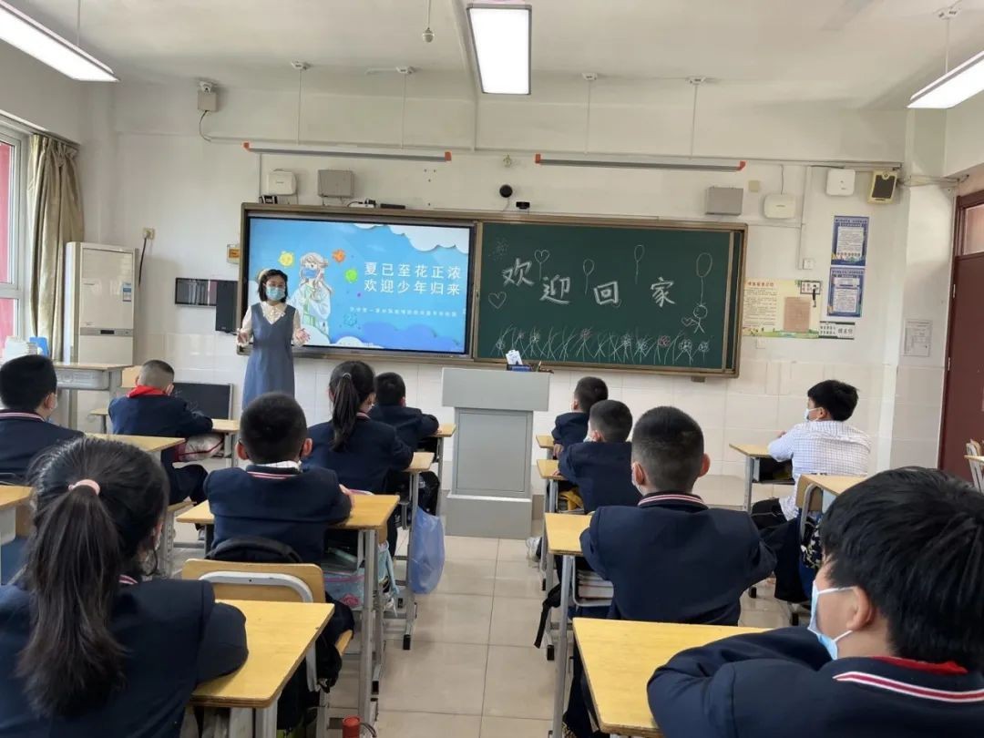 升旗仪式上,校长李秀莲以“夏已至花正浓,努力奋进正当时”为题开展“复学第一课”。李秀莲带领同学们一起回顾了在党和政府的坚强领导下,中国人民战“疫”到底的不凡历程,深入总结了疫情期间老师们兢兢业业进行网上授课的“疫样”工作状态,让孩子们体会到疫情背景下责任担当、奉献大爱的深刻含义,勉励大家要学会自律、学会感恩、学会立志、学会热爱。李秀莲强调,虽然回归校园生活,但不代表疫情完全消除。“如今在全社会的共同努力下,疫情防控形势向好,我们更要珍惜来之不易的校园生活,继续增强自我防范意识和防护能力,自觉养成良好卫生习惯和交往习惯。”随后,各班还开展了主题班会活动,班主任老师对孩子们进行了疫情防控形势和防护知识的再教育、再提醒和再警示,帮助学生正确看待疫情,进行心理调适,缓解焦虑情绪,增强学生信心。