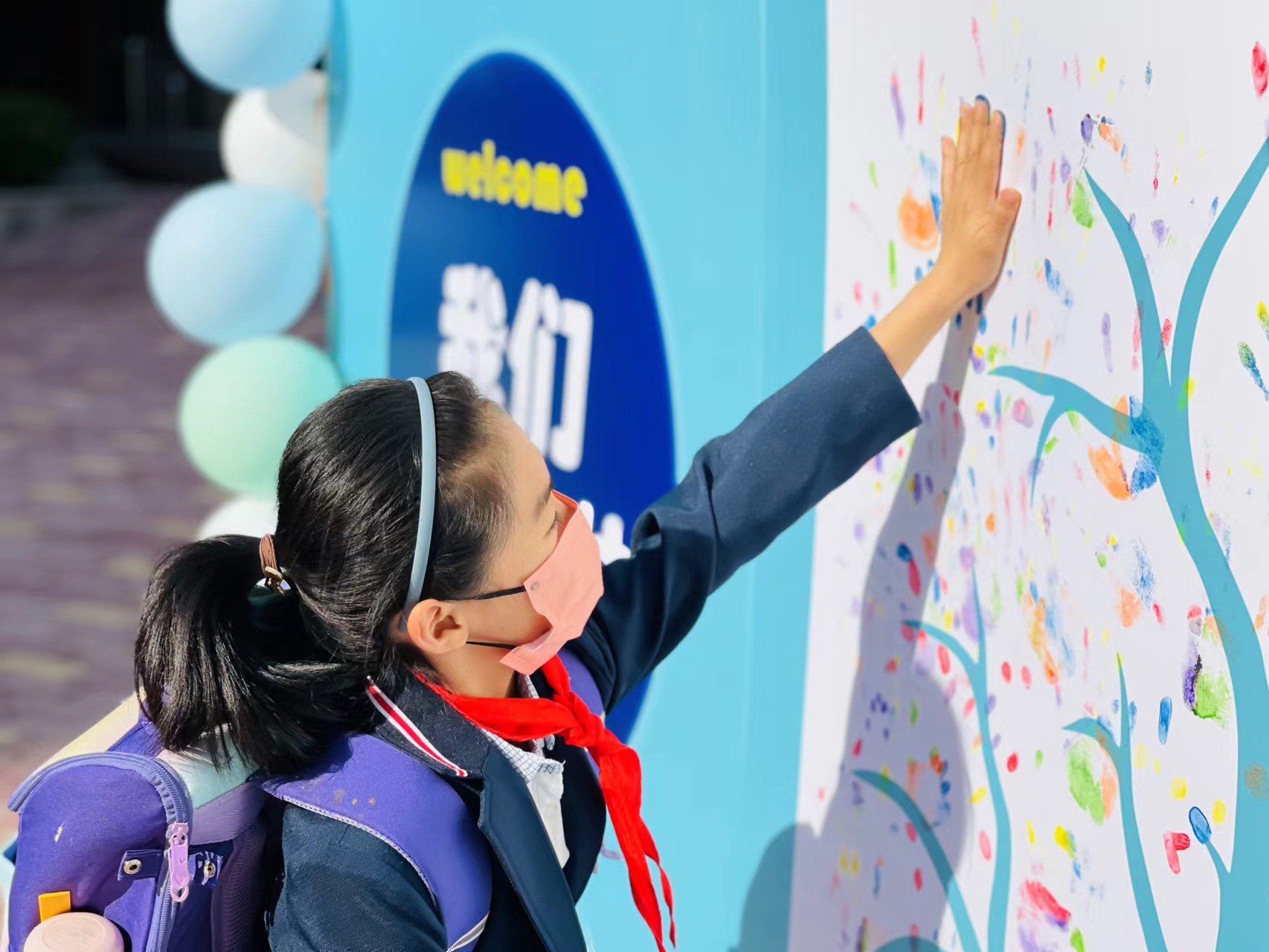 还有的学生手拿“疫”别多日 美好重现 ”等欢迎牌,对同学们的返校表示欢迎。墨香少年们在“欢迎回家”这棵大树上面印上自己的小手印,就像小树苗投入大树妈妈的怀抱,共同组成一棵生机勃勃、充满希望的大树。绿叶汇聚、生生不息,立德学校这棵大树会变得更加葱郁。
