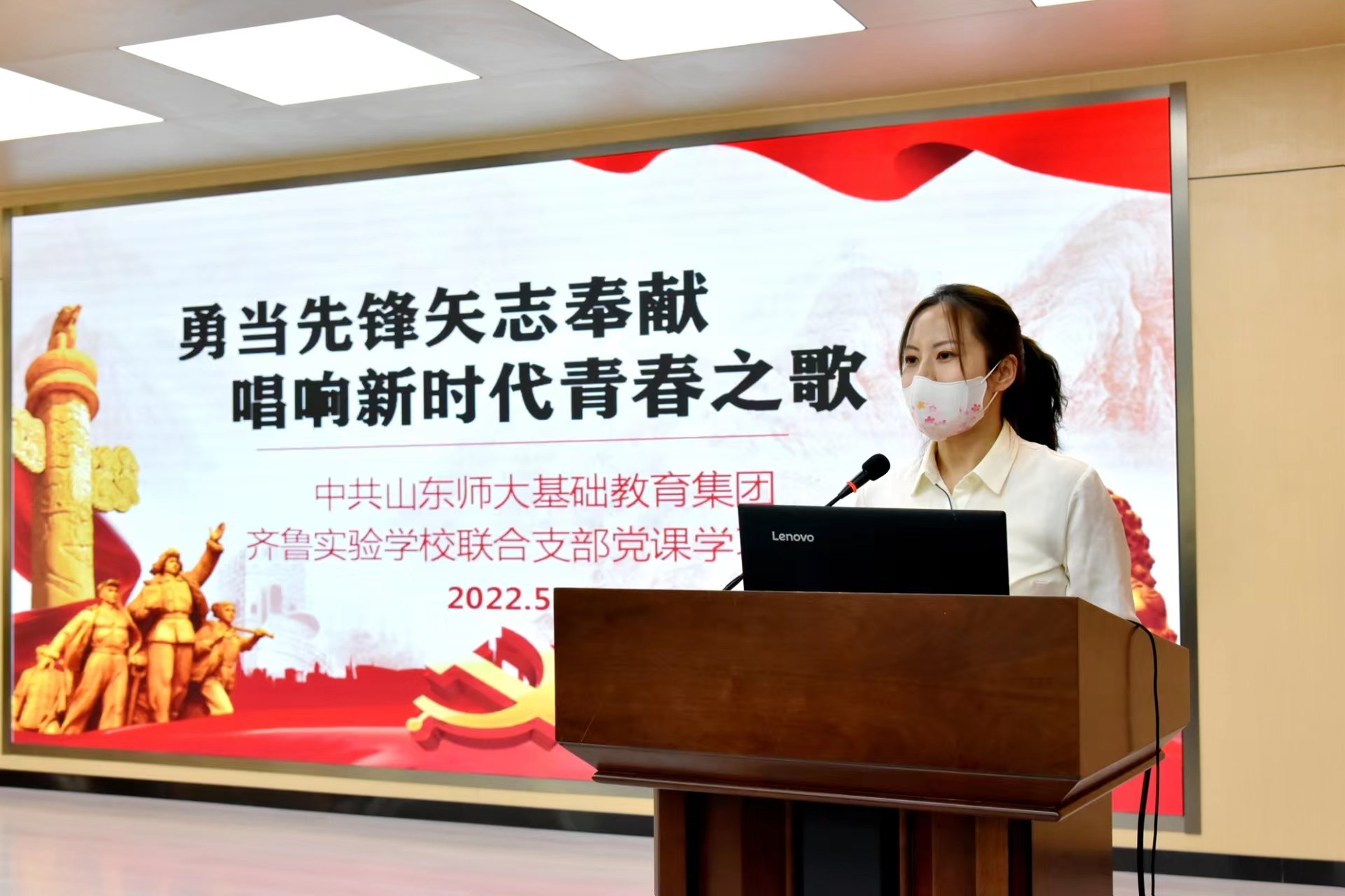 会上,第二党支部书记林雪以《勇当先锋矢志奉献 唱响新时代青春之歌》为主题,带领全体党员进行学习。结合齐鲁学校的实际工作情况,林雪对青年同志提出希望、发出号召。她指出,全体党员要坚定理想信念,牢记初心使命,把青春奋斗融入党和人民的壮阔事业,在奋进新征程、建功新时代中贡献青春力量、续写青春荣光。