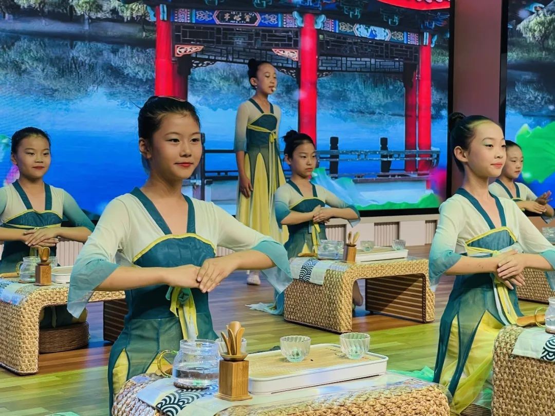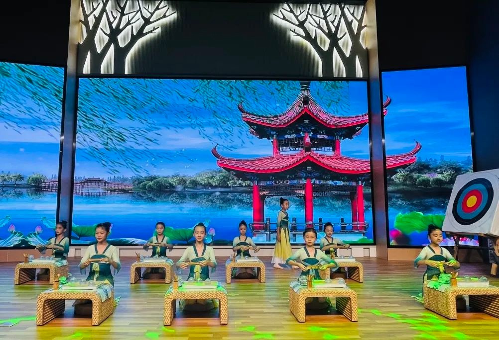 在茶艺表演《有泉则茗》中,麓茗轩茶艺社团以泉水沏茶,品味艺术之美、感受东方神韵;在童声合唱《泉水吟》中,麓之声合唱社团用歌声唱出了泉水人家的骄傲;射艺展示《 大唐盛世》,一姿一态都表达着对高尚品德的追求。不仅如此,活动现场,兴麓师生朗诵原创诗歌《泉水叮咚·师生齐诵·喜迎二十大》、麓之星舞蹈社团表演《泉韵》,还有美术展示《流泉溢彩》……无一不表达着孩子们对家乡济南的热爱之情。