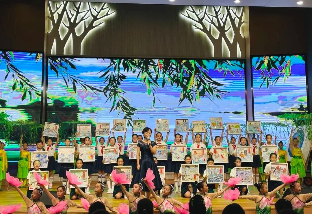 学校开设主会场与分会场,在学校报告厅举行盛大演出外,各班级还开展了“你好 泉水”泉水主题班会活动,结合自身艺术特色,从茶艺、合唱、射艺、舞蹈、美术等方面诠释了泉水叮咚中的天下泉城。同时,还邀请甘肃永靖县中庄中心小学的师生同步观看。
