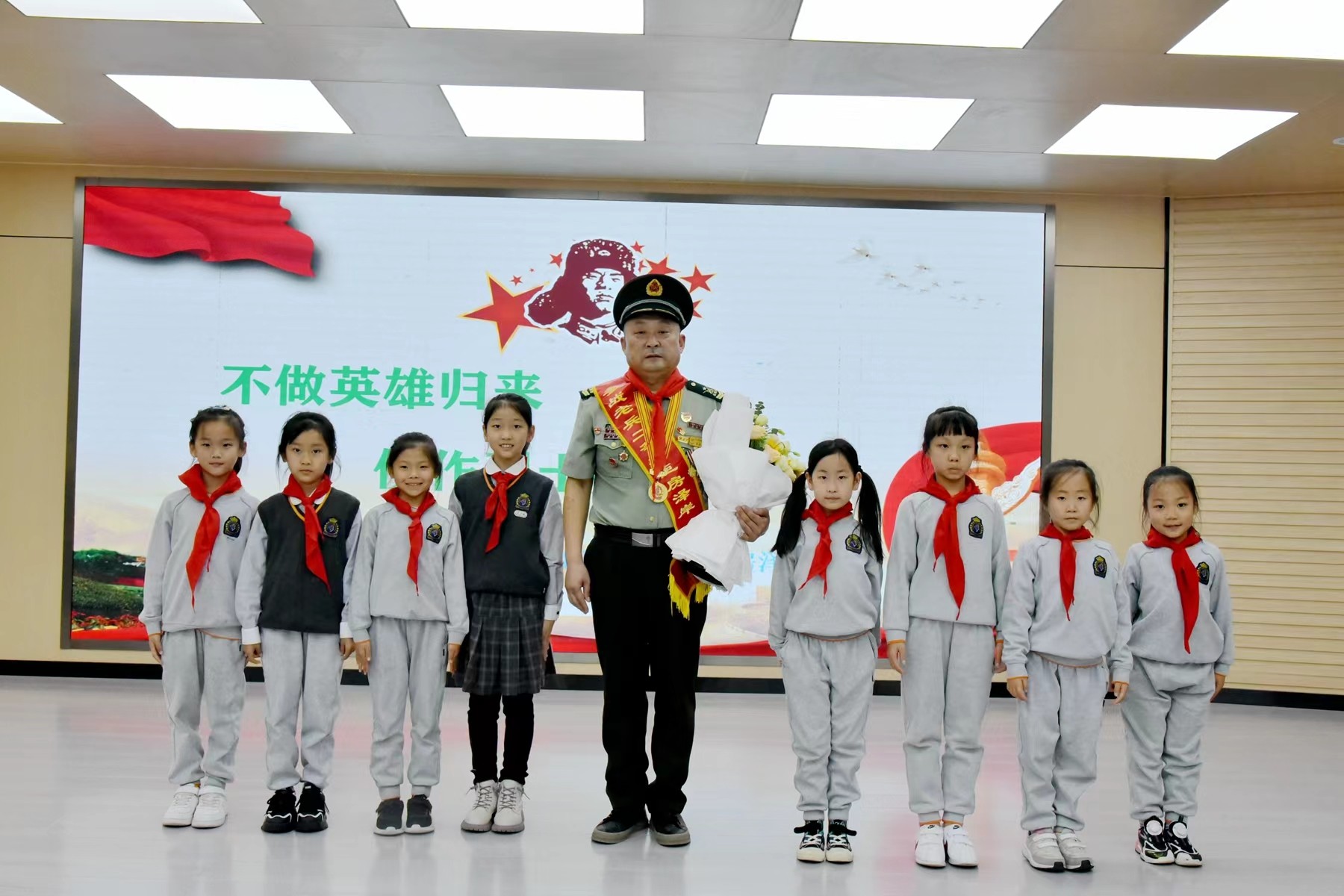 讲座中,房老师声情并茂地给少先队员们讲述了当年老山对越防御战的作战故事和多年来从事的公益活动。逝去的战友、经历的艰苦、心中无法磨灭的爱国热情、学习雷锋的事迹和精神触动着队员的心,大家听得认真专注,动人之处,眼中都闪烁着晶莹的泪光。在历史和现代的交织中,在战争故事和公益故事的切换中,少先队员们对房爷爷的钦佩和敬重之情油然而生,并且更深切地了解了历史,明白了幸福生活的来之不易。