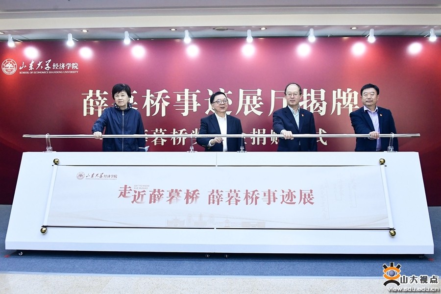 薛暮桥事迹展厅揭牌暨薛暮桥奖学金捐赠仪式上,李剑阁、薛小和、张永兵、桑晓旻共同为薛暮桥事迹展厅揭牌,李剑阁代表孙冶方经济科学基金会向山东大学经济学拔尖人才培养基地薛暮桥班捐赠100万元。
