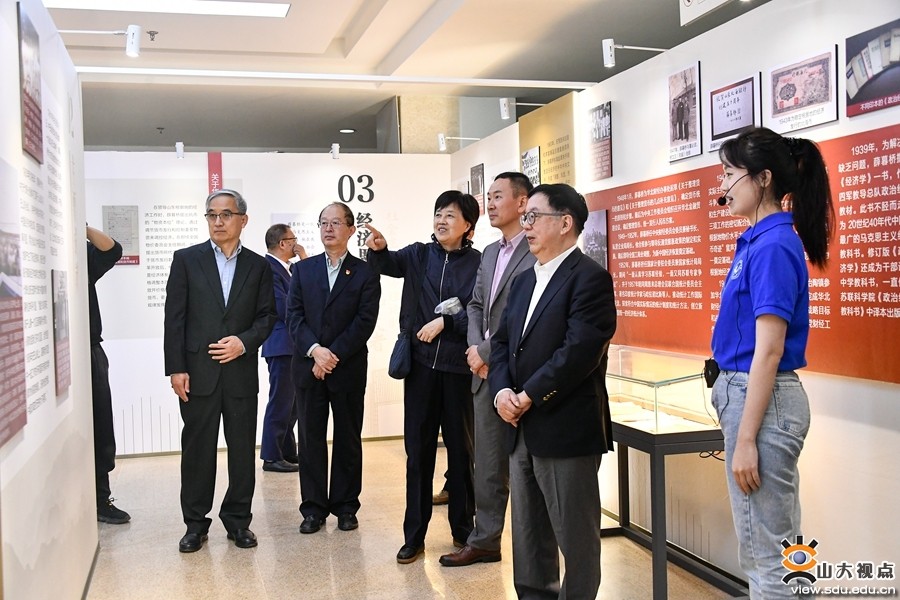 4月26日,“走近薛暮桥”文化品牌启动仪式在中心校区举行。仪式包括薛暮桥事迹展厅揭牌暨薛暮桥奖学金捐赠、大家讲坛暨薛暮桥大讲坛两部分。仪式前,山东大学党委书记郭新立会见了孙冶方经济科学基金会理事长李剑阁、秘书长薛小和一行。校党委副书记张永兵,党委常委、宣传部部长桑晓旻出席仪式。