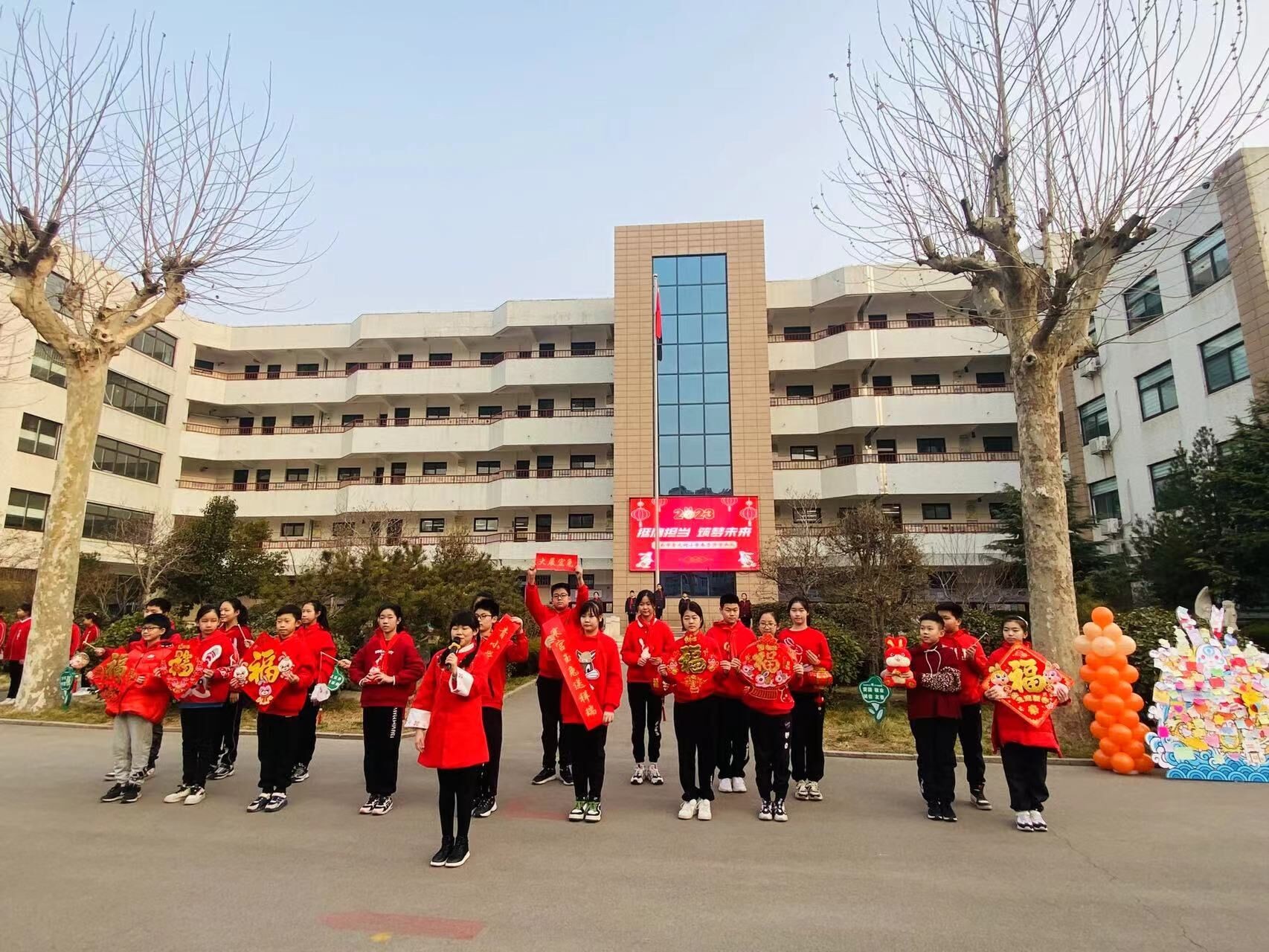 玉兔迎祥花满路,春风送瑞福临门。经历了寒冬时节的种种考验,2月6日,济南市青龙街小学的师生们又相聚在美丽的校园,一起迎接新学期的到来,同时开展了以“挺膺担当,逐梦未来”为主题的开学典礼。开学典礼中,20位属兔的同学穿着自己的“新年战袍”一起唱响《二十四节气歌》,共同为全校师生送去兔年祝福,祈福祖国国泰民安。此外,为调节学生开学的紧张情绪,让学生更快适应新学期生活,学校还在开学典礼中特意设计了“大合唱”环节,全体学生共同合唱《孤勇者》,以饱满的情绪迎接新学期的到来。