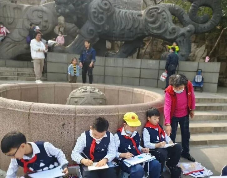 “泉畔课堂”更加贴近自然、热爱生活,让学生们沉浸其中,不仅丰富了绘画形式,也开阔了学生们视野。孩子们更直观地认识和了解到泉畔之美,体验到集体活动的乐趣。