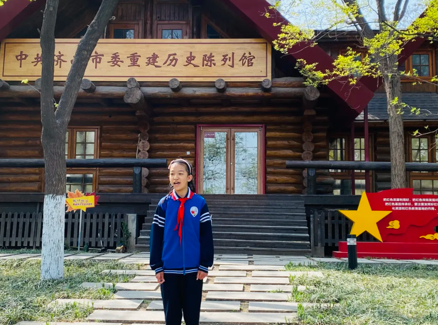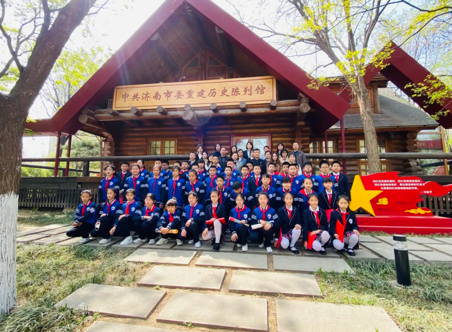 树木掩映中有一栋风格别致的木屋建筑,这就是中共济南市委重建历史陈列馆。在这里,党团队在五一中队赵夏萱的宣讲中了解这里的革命故事与济南市委重建历史,重温那段峥嵘岁月,感受革命先烈坚定不移的理想信念、无私奉献的崇高品德和艰苦奋斗的革命精神,接受了一次深刻的精神洗礼。