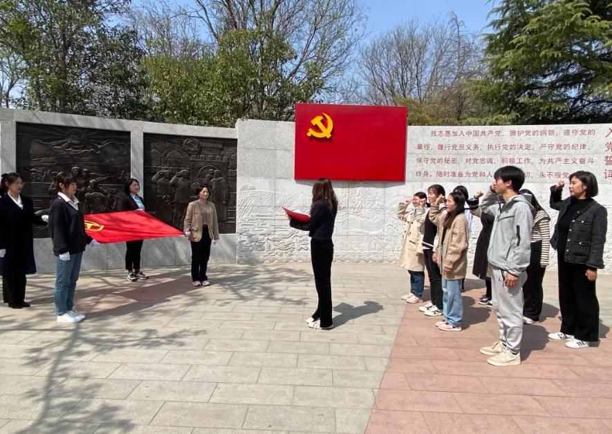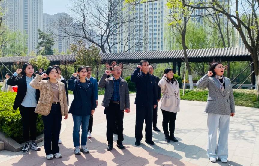 团员教师们面向团旗共同宣誓,铿锵话语,铮铮誓言,初心如磐,寄托着对革命先辈们的追悼,更彰显着当代团员青年教师接续红色薪火的决心。