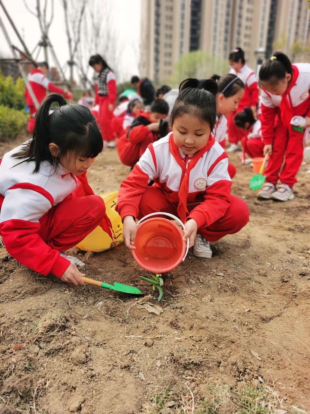在济南市天桥区枫景小学,学校将二十四节气理念与劳动教育相结合,每个节气都策划了相应劳动项目。“近日,和春分节气相结合,我们便开启了春分种植活动。”副校长郭真真介绍说,去年,学校就专门为孩子们开辟了一块耕读园,以班级为单位实施班级承包制,为每个班级划分了“责任田”。此次春耕活动前,中队辅导员贺佳涵专门带领队员们提前了解春耕的注意事项及劳动要求;活动中,孩子们便化身“小小春耕员”,洒水湿润土地、拿铲子铲沟、把小种子埋在土里……分工有序,不仅种下韭菜、大蒜、辣椒、南瓜等农作物,还在周围种了一圈鲜花的种子,尽情感受着春日劳动的快乐。