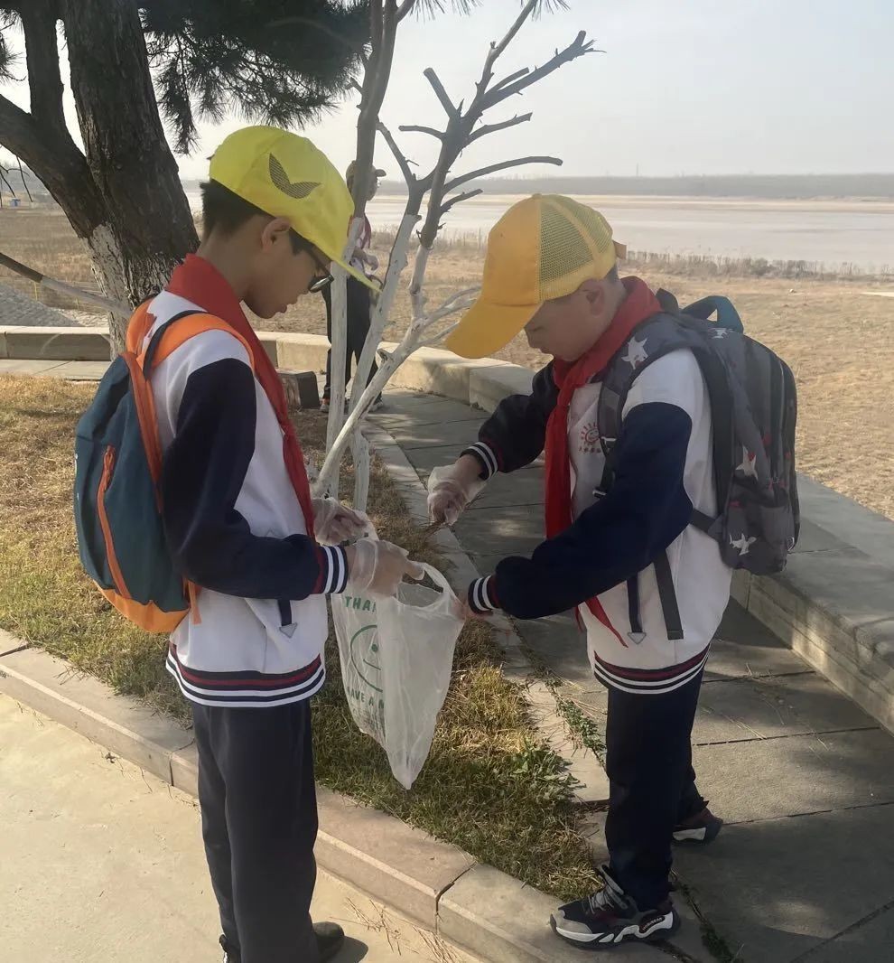 济南市天桥区实验小学的孩子们则来到了黄河岸边,在陶醉于母亲河初春景色的同时,看到烟头、枯树叶、包装纸等“不和谐”的因素,便顺着堤坝把草丛里的垃圾一点一点捡拾起来。随着垃圾袋里的垃圾越来越多,黄河河堤周边的环境越来越好,看着自己“美化”后的春天,孩子们个个喜笑颜开。山东师范大学附属中学2022级的学生们分头行动:一班与十二班不约而同相约佛慧山、四班走进了龙门山的世界、五班探寻济西湿地的水文生态研究、七班拥抱华山湖的自然风光、八班在青牛山体验生态的魅力、十六班赏明湖风光……