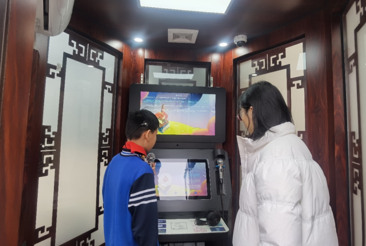 一开校门,党员教师早早来到朗读亭前,等候今日最佳“小小朗读者”的到来。为学生们戴上耳麦,调试话筒,帮助学生挑选自己喜欢的经典篇目,按下录音键,一场师生共同的朗读之旅便开始了。或是深情讲述红色经典故事,或是合作诵读爱国诗作名篇,自由自在地表达心声、传递情感。
