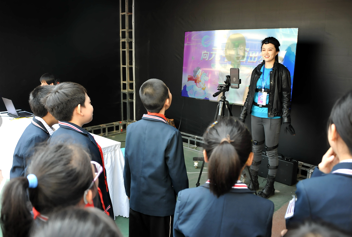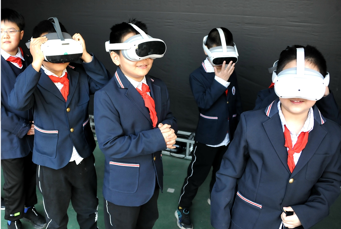 “哇!太神奇了”“好逼真”“还可以这样啊”……3月30日,济南市解放路第二小学的操场上,孩子们欢声笑语,一个个展台前都是攒动的小脑袋。在他们的惊呼之下,是学校“元宇宙智慧教育周”活动设计的各个有趣的体验项目:VR、AR、AI绘画、CHATGPT、虚拟直播、数字人……原来,是“元宇宙”走进了校园!