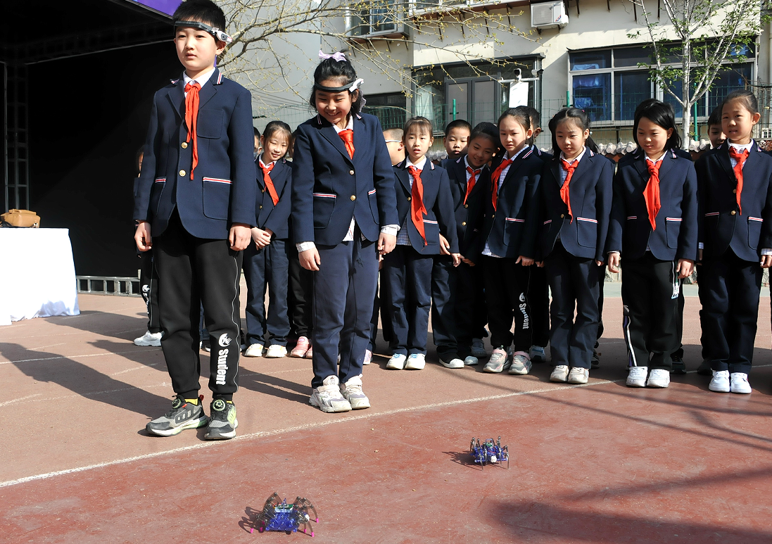 操场另一边,脑机交互体验区的脑控机器人也吸引了孩子们的围观。“哇!你看,它动了,它动了!”利用脑波探测仪、传感器、蓝牙等技术,孩子们凭借“意念”便实现了对脑控机器人的实时控制。三年级二班的刘宸瑜在体验结束后分享了自己的控制技巧,他表示,自己就一直盯着操场远处的舞台边缘,完全放空自己,机器人便动了起来。据了解,脑控机器人可以锻炼儿童的专注力,帮助儿童维持更久的专注时间。