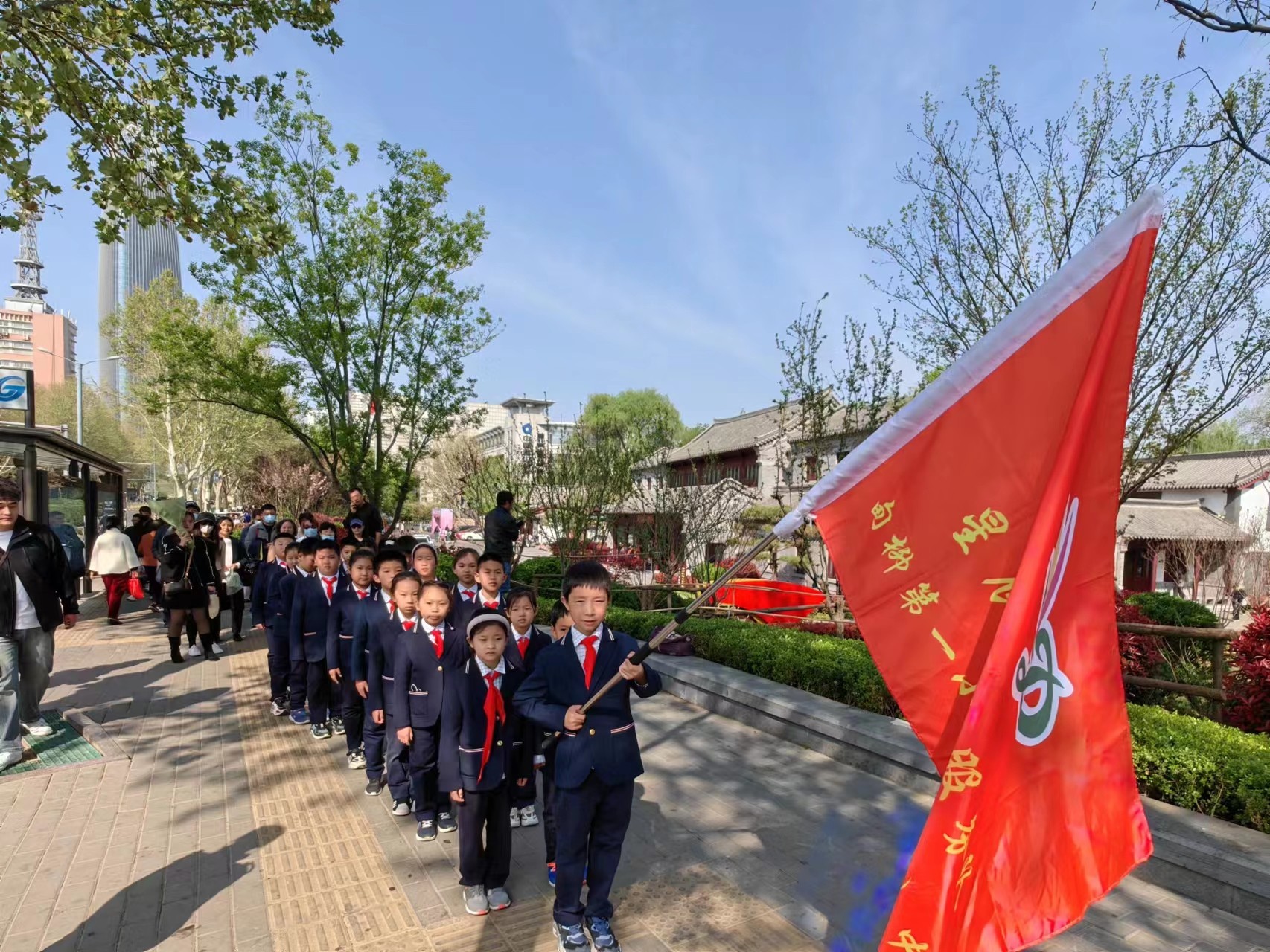 从中共山东早期历史纪念馆徒步到爱国主义教育基地解放阁,近日,济南市甸柳第一小学的队员们开展了“传承红色基因 赓续红色血脉”清明缅怀英烈主题教育活动。