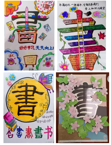 除此之外,熙华小学面向全校学生, 征集“书”字创意设计作品。同学们选择自己喜欢的字体,利用身边可使用的彩泥、毛线、树叶等材料,以自己擅长的表现形式完成了创意“书”字作品。为“书”设计一件件个性化服装。