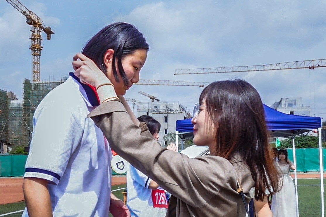 赛场上,长跑、短跑、接力,学生们全力以赴;跳高、跳远、投掷,学生们奋力拼搏!