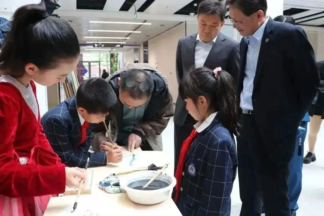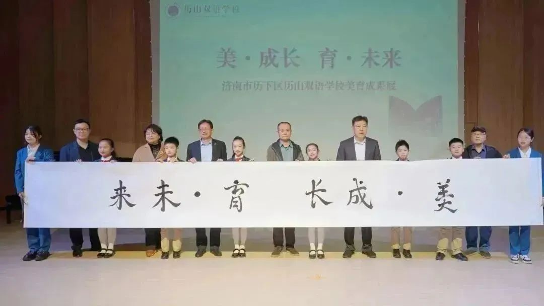 4月28日,“美·成长 育·未来”济南市历下区历山双语学校美育成果展开幕。山东师范大学美术学院院长刘明波,山东师范大学基础教育集团总校长、山东师大基础教育集团常务副理事长、总经理、山师附中校长苗禾鸣,山东师大基础教育集团党委书记刁兴才,济南市历下区教体局教研员黄倩珺,山东师大基础教育集团教育教学发展部部长马刚,学校校长赵相甲,学校党支部书记、小学部校长孙青,学校理事徐达,学校教师、学生、家长代表,共同参加本次活动。