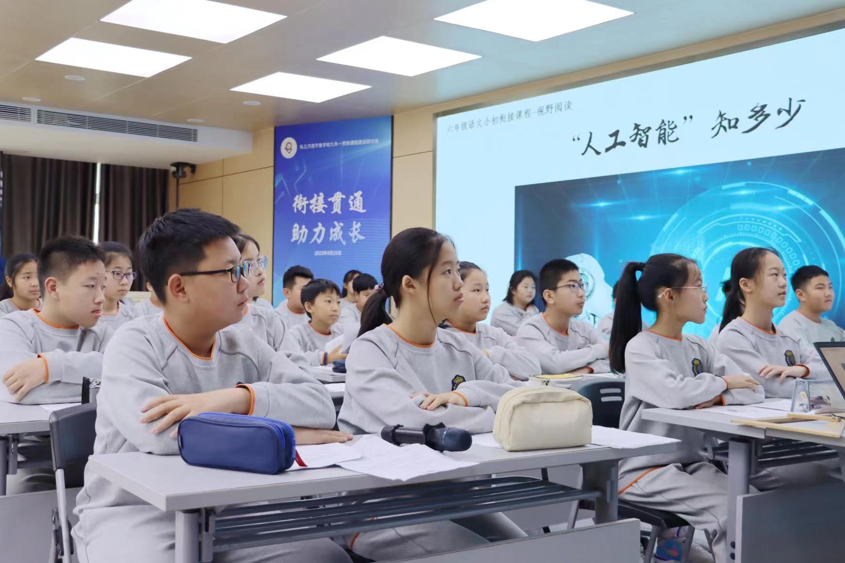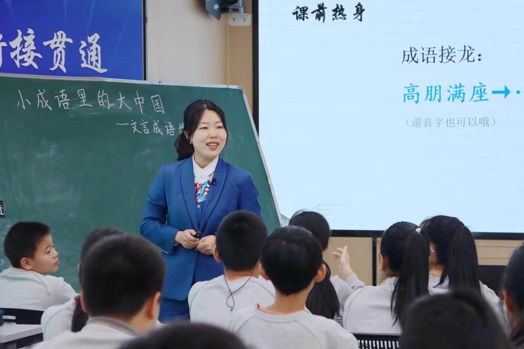 小学部张振秀老师执教阅读课《人工智能知多少》,以现代文为载体,引导学生辩证的看世界。课堂环节清晰高效,学生深入交流碰撞,思辨思维得到培养。中学部范晓静执教《小成语里的大中国》,以文言成语为载体,提高学生阅读能力和思维品质,学生能力增长“看得见”。无论是现代文还是文言文,无论是社会热点还是文化经典,通过非连续性文本阅读的方式提升学生的认知力、思考力、表达力,减缓了衔接的“坡度”,传递了语文阅读素养的“接力棒”,实现小学到中学的“软着陆”。