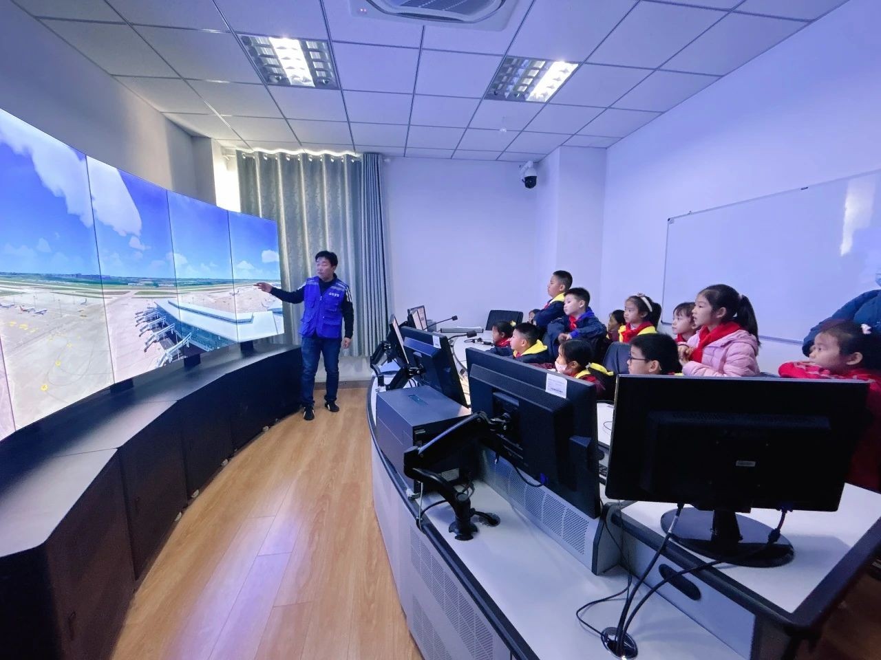 为开阔队员们的科学视野,丰富队员们的民航知识,11月19日上午,济南市甸柳第一小学的队员们走进济南市国际遥墙机场空管中心开展机场研学活动,在蓝天白云间怀揣童心开启一段梦幻航天之旅。